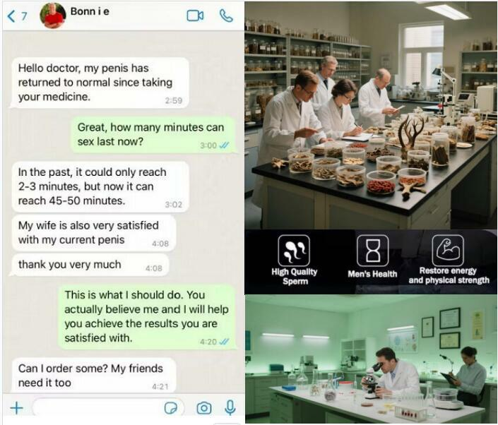 Results: Sexual performance lasts 50-60 minutes; rapid erection within 1 minute; 100% rigidity; penis growth to 8-10 inches; helps women achieve orgasm and moan; improved semen quality; more than 5 sexual encounters per night; regained youthful vitality and confidence.