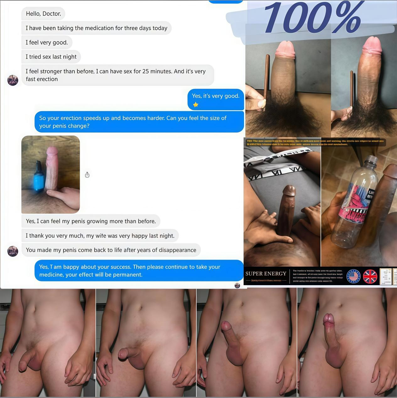 Results: Intercourse time 30-40 minutes, erection rate 85%, penis growth 6-8 inches, increased girth, helps women achieve orgasm, frequent screaming, at least 3 times per night.